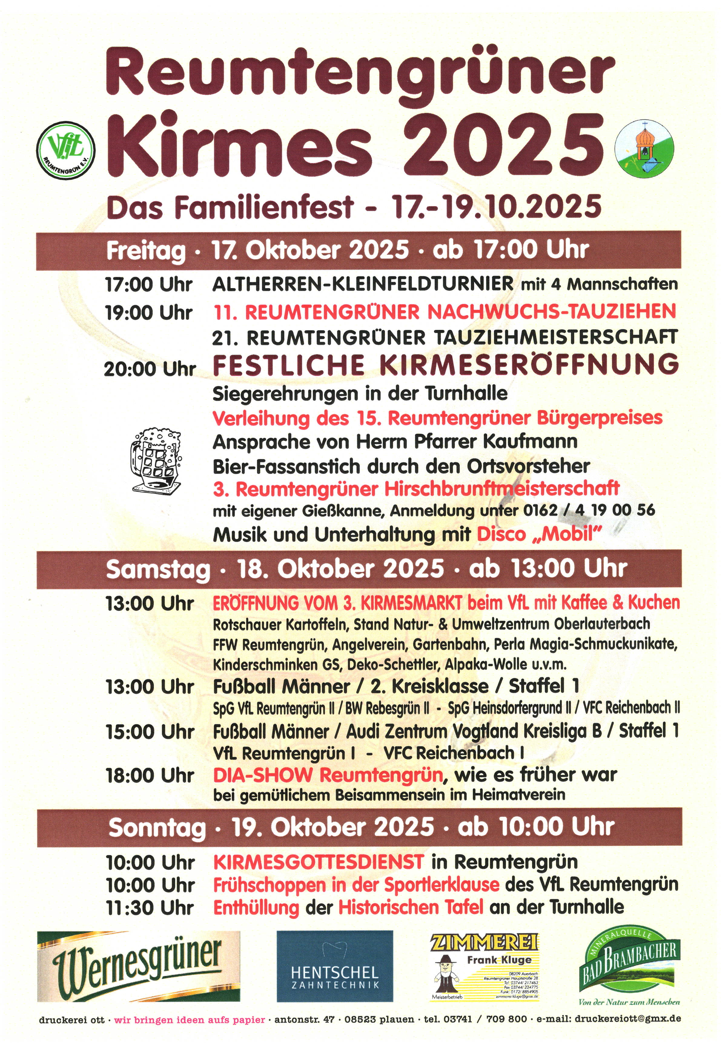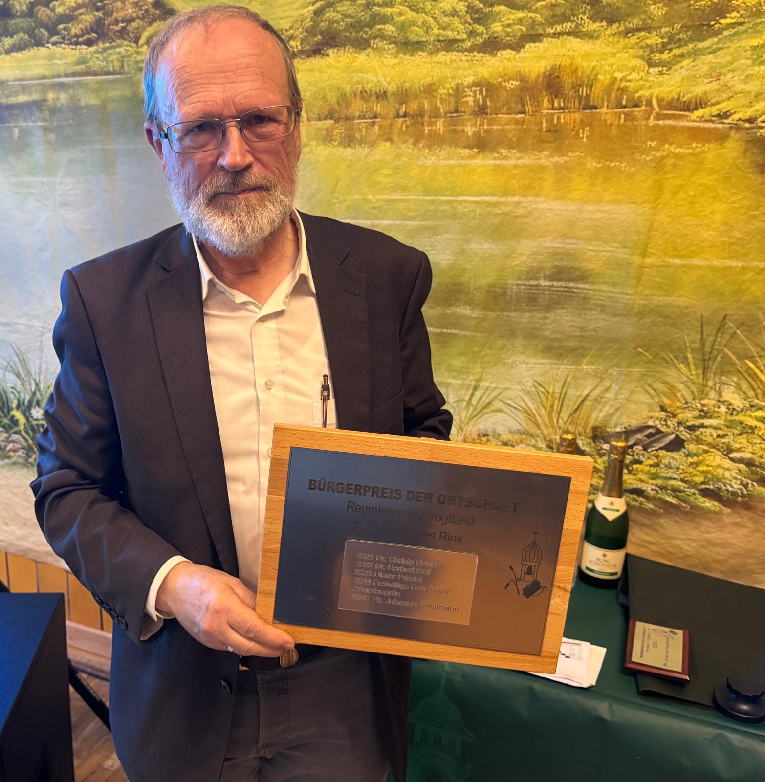 Der Kirmes Freitag begann traditionell mit einem Fußballspiel und dem Tauziehen. Ebenfalls Tradition ist die Verleihung des Reumtengrüner Bürgerpreises. Diesmal erhielt ihn zwar kein Reumtengrüner Bürger, aber unser Pfarren Johannes Kaufmann ist eng mit dem Geschehen im Ort verbunden. Einemal durch seine Tätigkeit als Pfarrer der Gemeinde uns als Sportler.