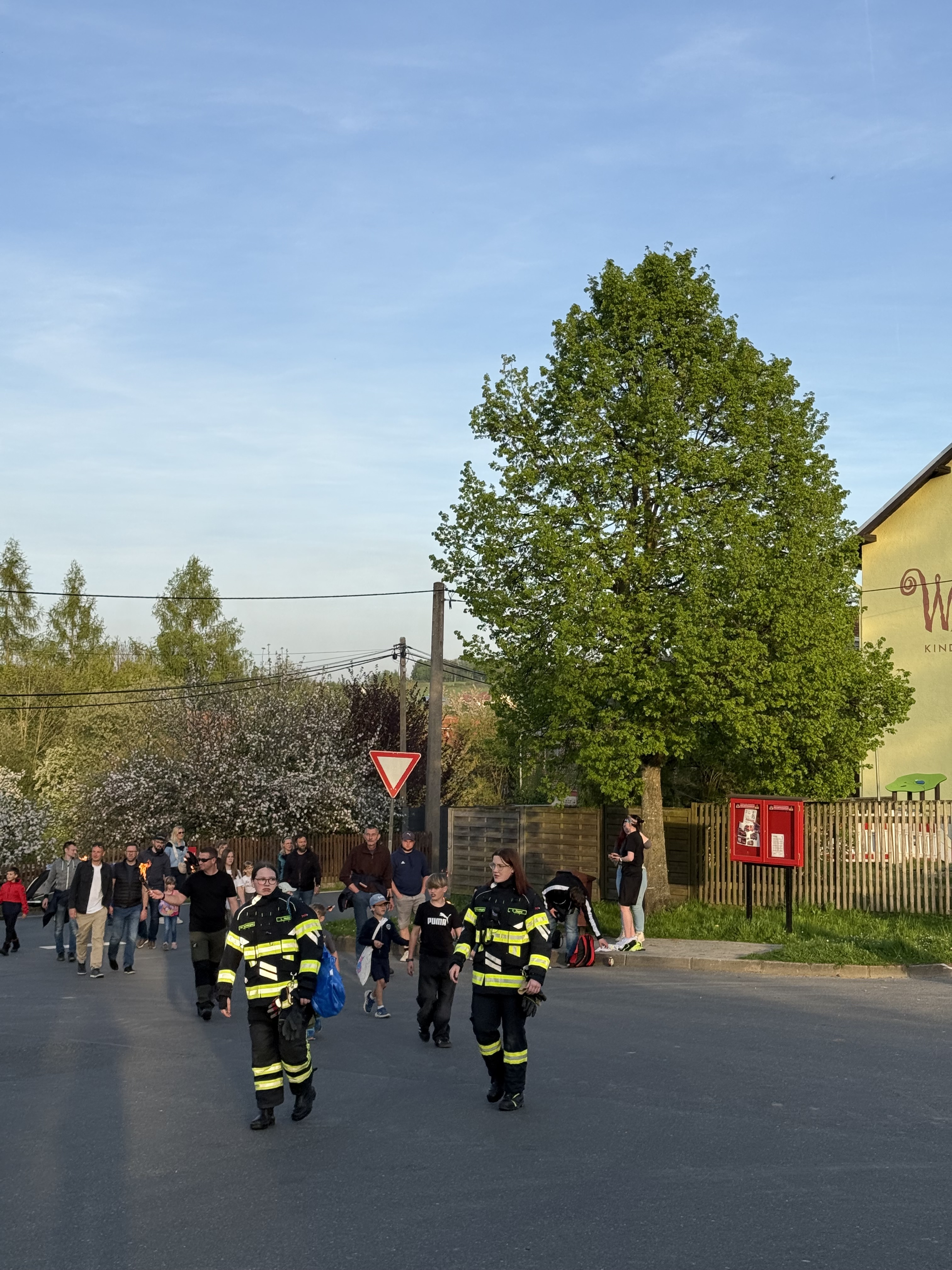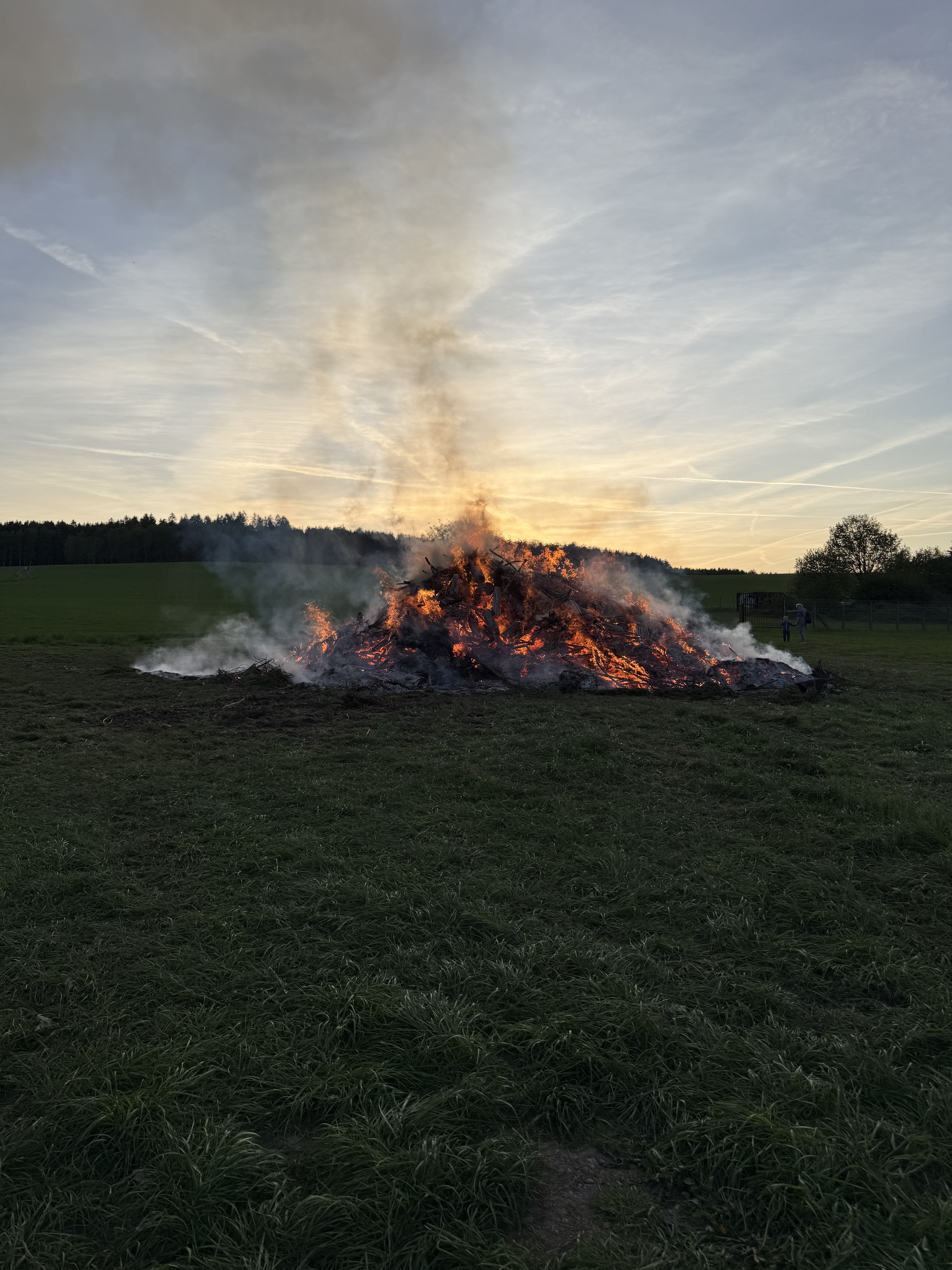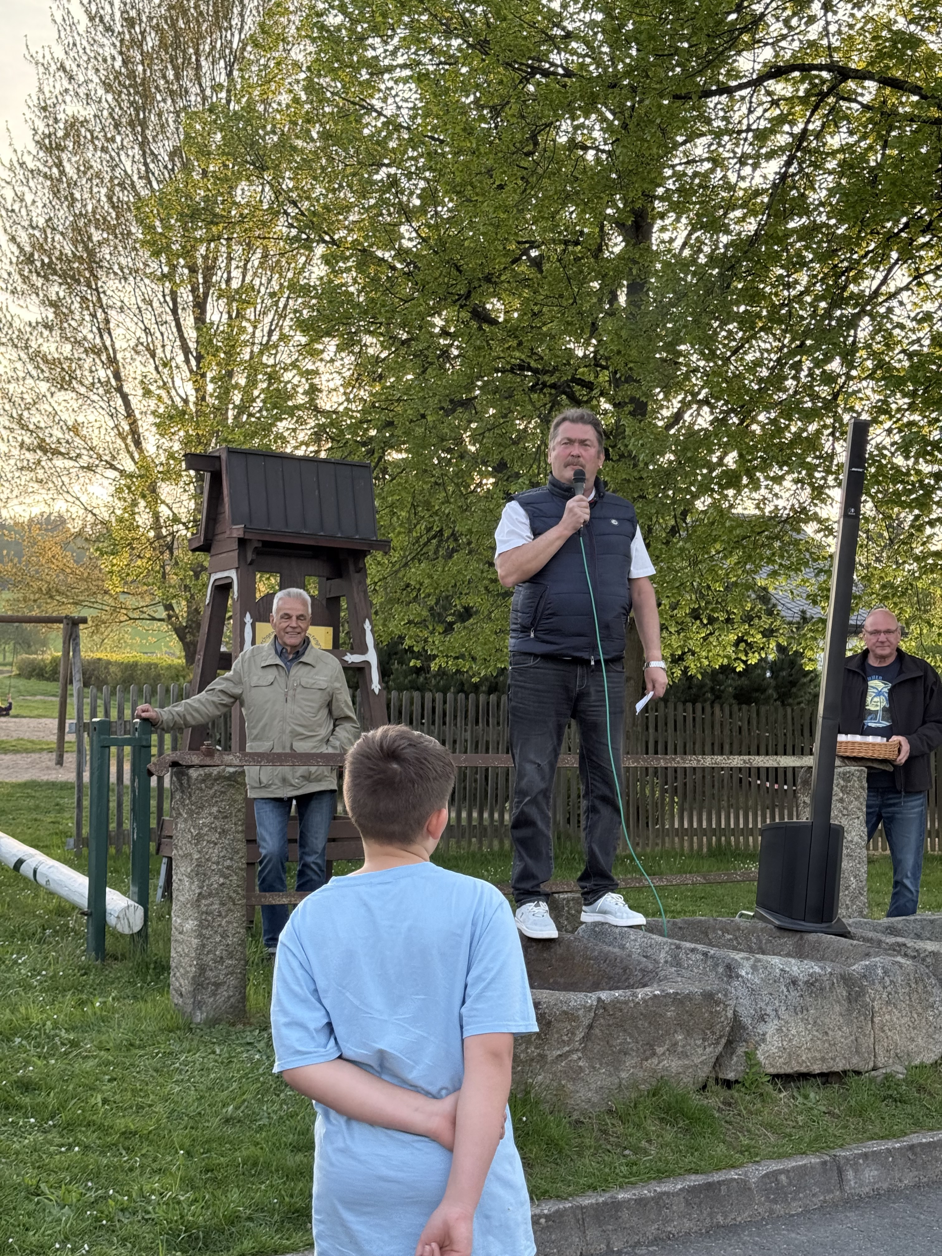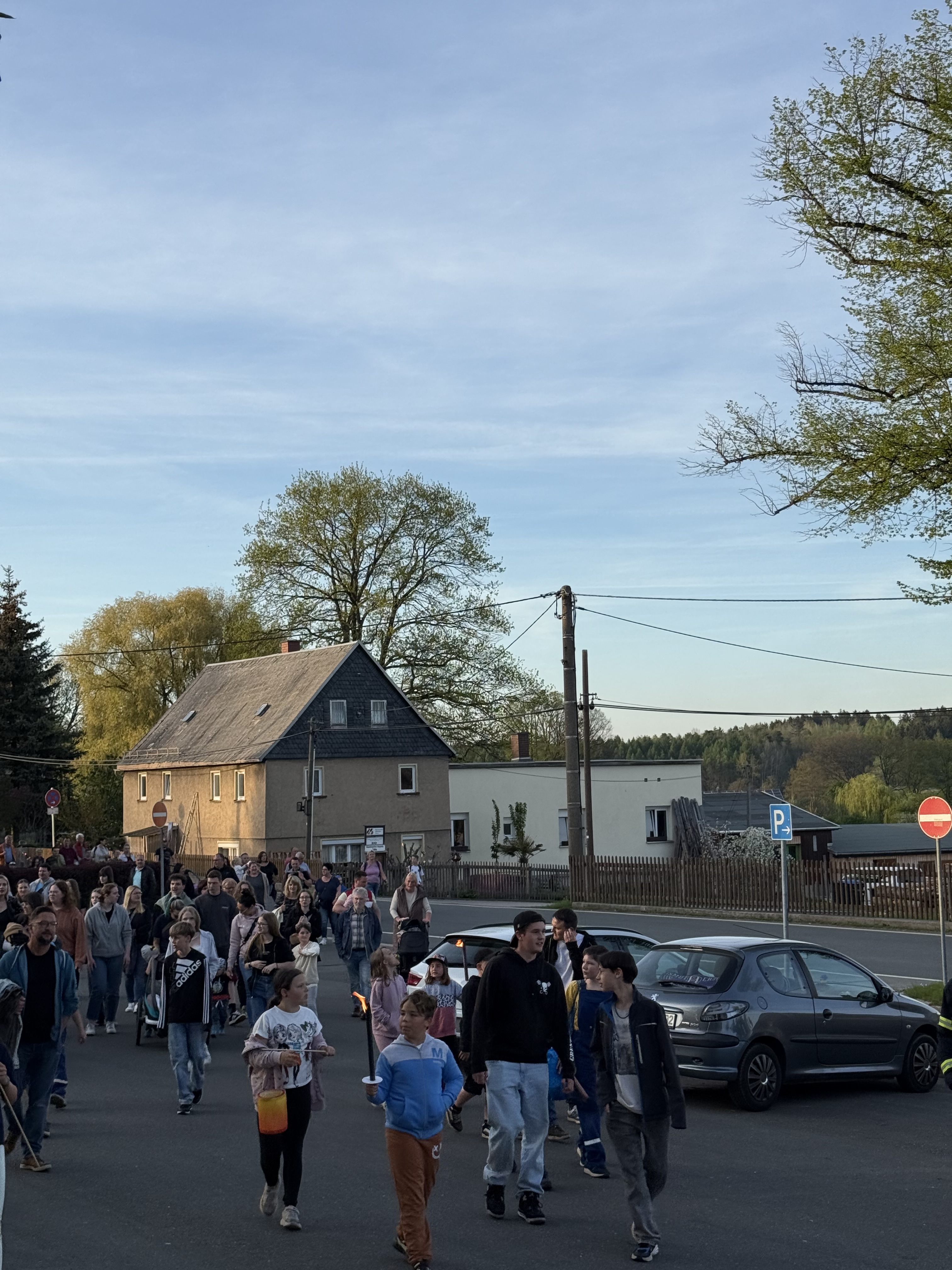Zeit gleich trafen die beiden Fackelumzüge von der Grünen Aue und der Kurzen Seite im Dorfzentrum ein. Eben ein gutes Timing der Feuerwehr. Erwartet wurden die Umzüge vom Ortsvorsteher. Er begrüßte wieder alle mit einer kleinen Ansprache. Danach wurde traditionell der Maibaum aufgestellt und das Höhenfeuer eingezündet. Dank des herrlichen Wetters kamen sehr viele Gäste aus Nah und fern nach Reumtengrün. Der 30. April bei uns hat mittlerweile Kultstatus. Nicht zu vergessen und in höchsten Tönen zu loben sind die Anstrengungen der Kameraden der Freiwilligen Feuerwehr, den Mitgliedern des Feuerwehrvereins und weiteren Helfern. Das betrifft die Vorbereitung - bereits eine Woche vorher wurde mit dem Aufstellen des Zeltes begonnen -, die Bewirtung zum Fest mit allen Nebentätigkeiten und den Aufräumarbeiten. Danke, Danke!!