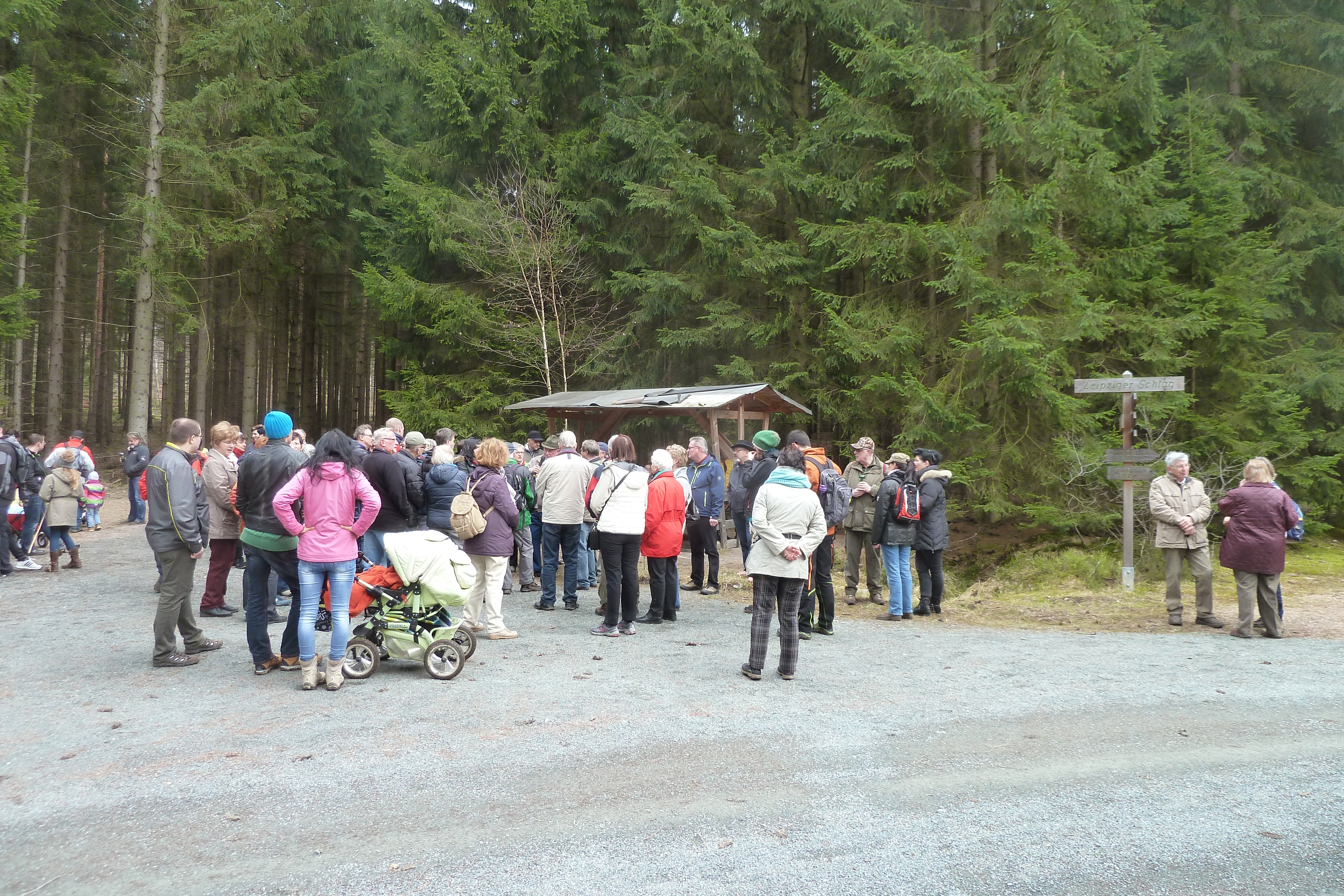 Der Blick auf die Wetterprognose für den Ostermontag war in diesem Jahr ein Muss für viele Heimat- und Wanderfreunde aus Reumtengrün und der Umgebung. Zum Glück konnten wir uns auf die Wetterfrösche verlassen. Bei herrlichem Sonnenschein und sehr angenehmen Wandertemperaturen fand sich wieder eine bunt gemischte Truppe von über 100 Wanderfreunden Punkt 11.00 Uhr vor der Heimatstube ein. Der Versorgungstrupp hatte sich schon eine Stunde früher auf den Weg gemacht, um den Imbiss an der Götz`n Reith vorzubereiten. Der Wanderleiter Günter Gottschald gab im Vorfeld schon einige Informationen zur Wanderung preis. Die Route musste in diesem Jahr mehr oder weniger an den Zustand einzelner Wege, bedingt durch die Holzfällarbeiten mit dem Harvester, angepasst werden. Die erste Etappe der Wanderroute führte dem Schulweg hoch, am Kalten Feld vorbei zur Mittagsrast an der Götz‘n Reith. Danach ging es weiter in Richtung Leipziger Schlag. Circa 50 Meter der Strecke waren dann doch eine Herausforderung für die Kinderwagen, Pollerwagen und das Schuhwerk. Echte Wanderfreunde konnte das alles nicht abschrecken. Der Leipziger Schlag hat nach der Überlieferung seinen Namen tatsächlich einem Holzeinschlag für die Stadt Leipzig in den zwanziger Jahren des vorigen Jahrhunderts zu verdanken. Zurück in der Heimatstube, welche von den Heimatfreunden österlich geschmückt wurde, waren bereits die Kaffeetafeln vorbereitet. Bei Kaffee und selbst gebackenem Kuchen konnte das gemeinsame Beisammensein noch verlängert werden.